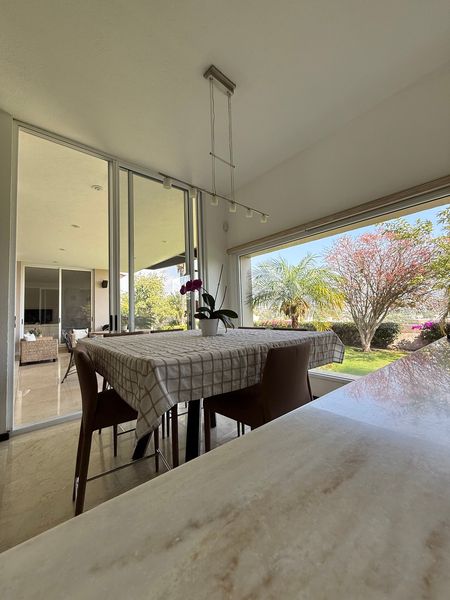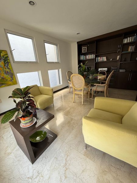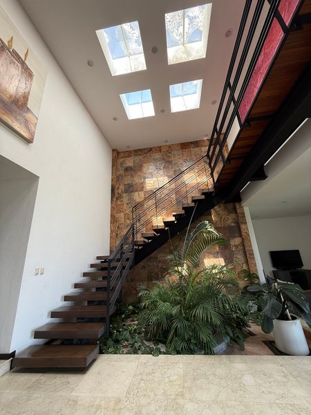 En planta baja con doble altura, tenemos una oficina hermosa con vista iluminada, baño de visitas, la estancia muy amplia de sala comedor que da vista a la terraza y jardín con árboles de limón, aguacate, higos, mandarina, guayaba