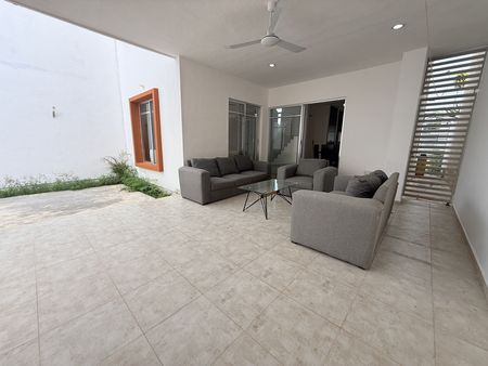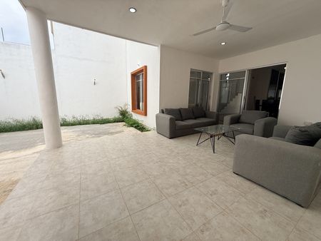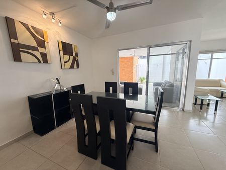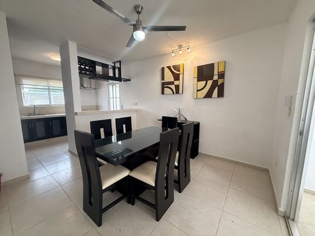 3 recámaras, principal con baño y las otras dos comparten un baño.También cuenta con 2 climas inverter , sala, comedor, cocina equipada, patio trasero techado, área de lavado techado. Decoración moderna.
