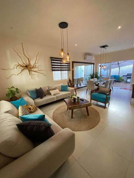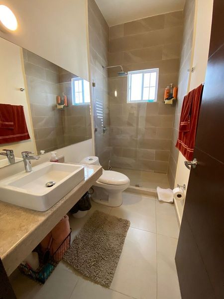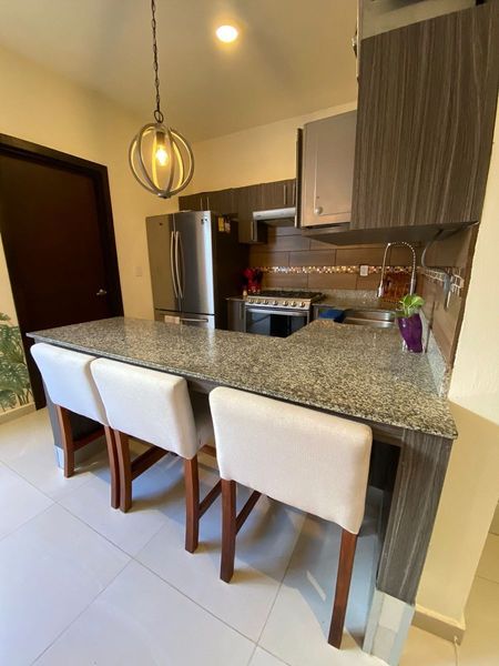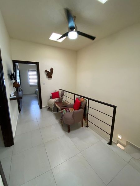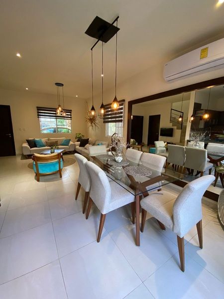 Equipada y amueblada al 100 en venta casa semi nueva 1 año de antigüedad, 3 recamaras cada una con baño la principal con vestidor y amplio balcón, baños con canceles de cristal templado y amueblado de alta calidad maderas de tzalam y parota, espacios abiertos sala comedor y cocina con granito área de lavado hermoso patio trasero adecuado para disfrutar con la familia y amigos, garaje techado para 2 autos, fraccionamiento con 99 casas áreas comunes maravillosas, 3 albercas, 3 pergolas con asadores, casa club, salón de eventos, gimnasio, pool bar, seguridad 24/7 en selvanova una zona excelente y de gran demanda