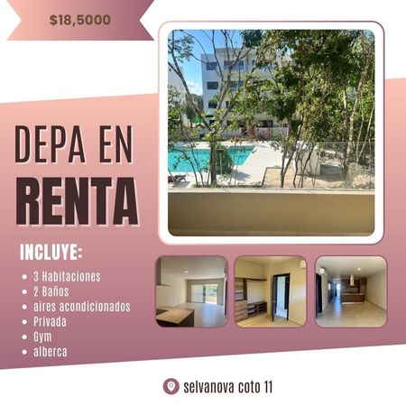 Hermoso departamento en renta, sin amueblar, Selvanova Coto 11, Playa del Carmen