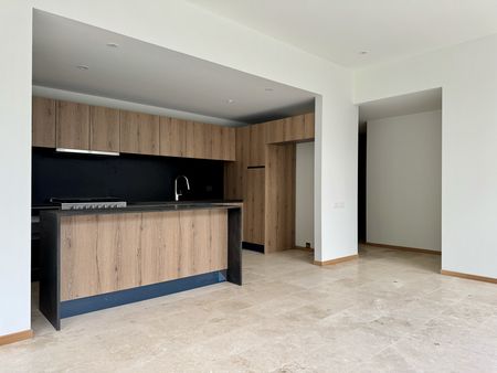 Cuenta con dos recámaras, sala-comedor, cocina abierta, centro de lavado, dos baños completos, baño de cortesía y dos cajones de estacionamientos.