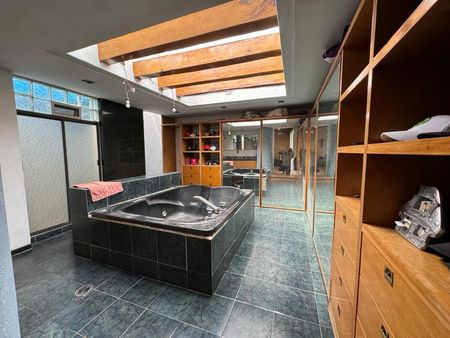 PLANTA ALTA, pasillo distribuidor con sala muy amplia 5 recamaras dos con vestidor y baño completo que comparten, 2 recamaras más secundarias con vestidor y baño completo cada una, 4 baños en total en planta alta, La recámara principal con sala, vestidor, baño con jacuzzi, vapor y terraza.