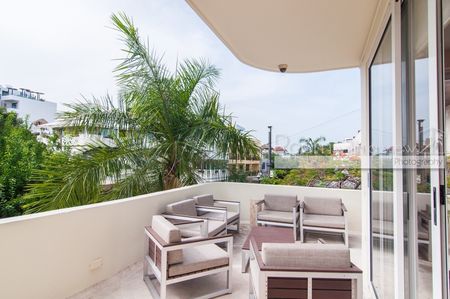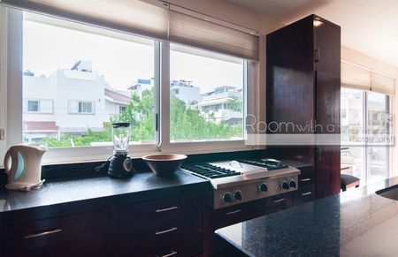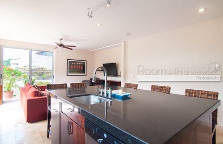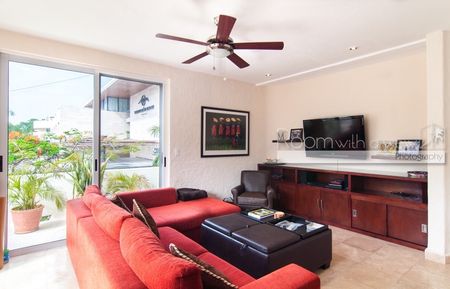 Este departamento de 3 habitaciones y 3 baños es amplio y lujoso, con más de 200 metrps cuadrados de espacio habitable interior-exterior. Tiene dos pisos, cada uno con terrazas privadas, además de una enorme terraza en la azotea con vistas a la Quinta Avenida. El piso principal cuenta con un espacioso diseño de concepto abierto con una cocina totalmente equipada con una isla y electrodomésticos de acero inoxidable, un sofá cama king-size en la sala de estar familiar y una parrilla Weber en la terraza con una ventana de paso a la cocina. Otras mejoras recientes incluyen un televisor Sony de pantalla plana grande, un reproductor de DVD, un módem Apple TV, un sistema estéreo y un calentador de agua de gran capacidad completamente nuevo. Este departamento también está equipado con ventiladores de techo, aire acondicionado y una lavadora y secadora. Se ofrece a la venta completamente amueblado y listo para que lo haga suyo.