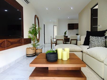 Estos nuevos departamentos de lujo de 2 y 3 habitaciones ofrecen mucha luz natural y balcón privado. La mayoría de las unidades se entregan casi completamente amuebladas, con vestidores y acabados de calidad en todo el espacio. El complejo ofrece excelentes amenidades compartidas, que incluyen casa club, alberca comunitaria, espacio de coworking, canchas de tenis y pickleball, gimnasio, ciclovías, áreas verdes y más.