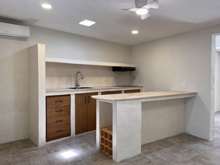 Cuenta con área de sala, comedor y cocina corridos con aire acondicionado.
