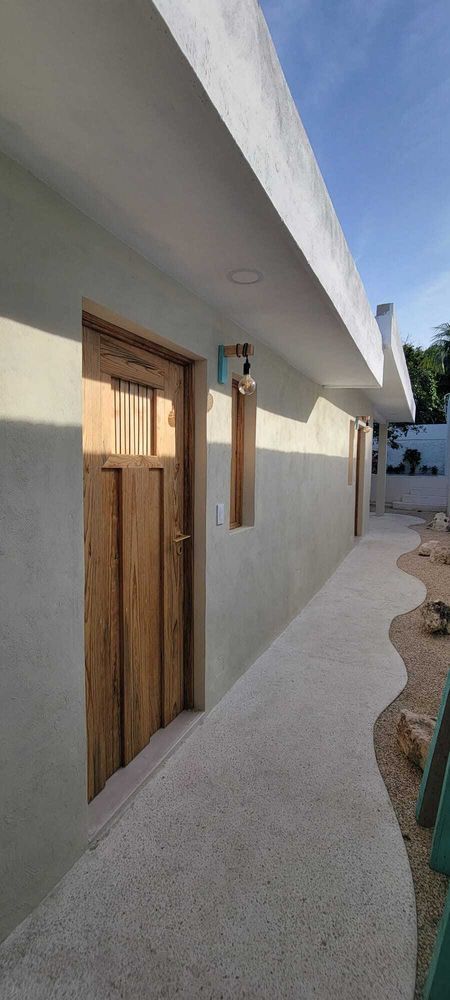 Fue remodelada con detalles como los muros de mampostería expuesta que le da un toque rústico y acogedor así como acabados de chukum en algunas áreas de la casa.