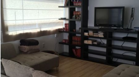 Cuenta con Sala con vista a una Terraza interior integrada a una área de Estudio de doble altura con estructuras metálicas modernas y Bar. Comedor amplio. Cocina espaciosa con ante comedor. Medio nivel abajo amplia Sala de Televisión, Gimnasio y Baño completo.
