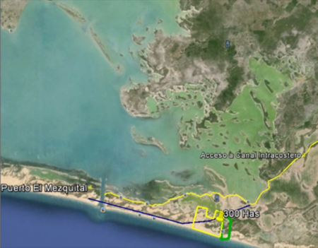 El terreno cuenta con 2,700 metros de litoral del Golfo de México.