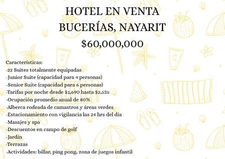 Este hotel representa una oportunidad única de adquirir un negocio turístico consolidado, con excelentes instalaciones, alta ocupación y gran potencial de crecimiento en una zona de constante afluencia turística. Ideal para inversionistas que buscan un proyecto rentable y con una ubicación incomparable.