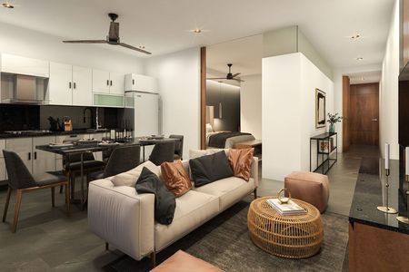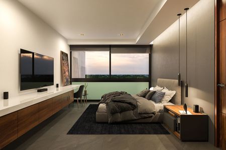 Cuenta con amenidades : estacionamiento techado, acceso controlado, elevador, shut de basura, áreas verdes, gimnasio, cuarto usos múltiples (co-work, sala de tv, mesa de ping pong, ludoteca, coffe spot), alberca, solárium, grill zone y rooftgarden.