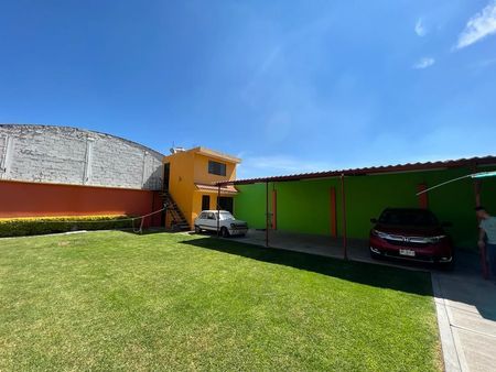 Cuenta con un amplio estacionamiento para 5 autos, una pequeña casa de almacén de 2 plantas y un baño.