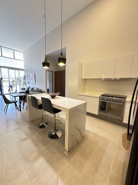 • Cocina abierta equipada con carpintería, isla y estufa de gas