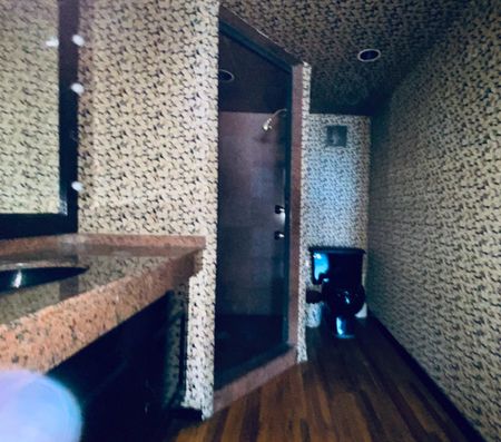 Baño con vapor, tina de hidromasaje (jacuzzi) y lavabos dobles