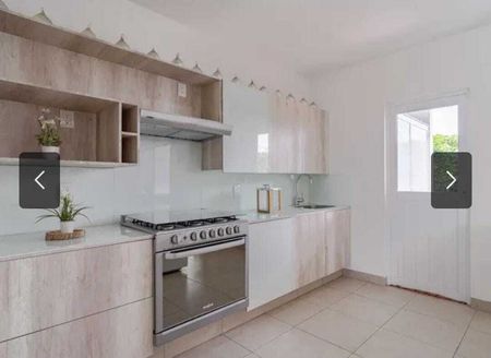 Cocina equipada con barra desayunador.