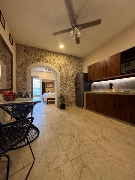 Espectacular Departamento amueblado con un estilo único de techos altos y una combinación de pisos de acabados de pasta y cemento pulido , ubicado en una de las zonas más conocidas y emblemáticas de Mérida Yuc. En García Gineres. A una cuadra de la avenida Itzaes y el transporte público a 500mts.
