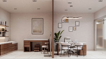 Este espacio optimiza cada rincón con escritorio, repisas, iluminacion y detalles pensados para una atención profesional