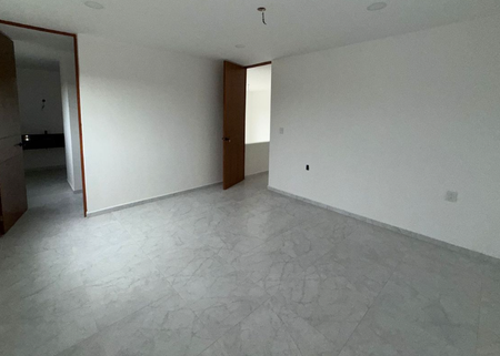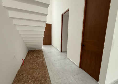 • Puertas sin cerramientos con alma de madera de xochil o pino, con recubrimiento de triplay de parota, bisagras en tono negro mate y chapas normales.