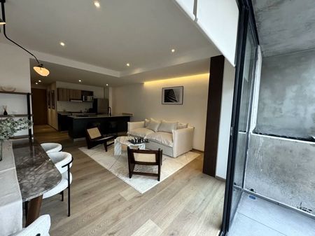 Sala, comedor con balcón y cocina abierta equipada con acabados de lujo. Medio baño para visitas. Cada departamento cuenta con 2 estacionamientos y con bodega y vigilancia 24/7.