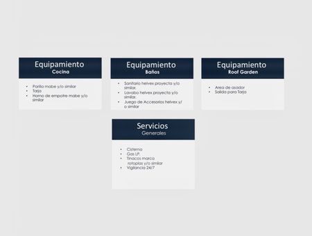 Gran proyecto residencial de ocho departamentos con terraza y roof top que cuentan con estancia-comedor, agradable terraza, Family, amplia cocina con acabados en granito, área de lavandería y cuarto de servicio con baño. Tienen tres recámaras, cada una con su baño y vestidor. Cuentan con bodega individual y cuatro lugares de estacionamiento por departamento.