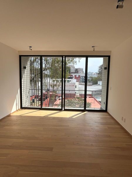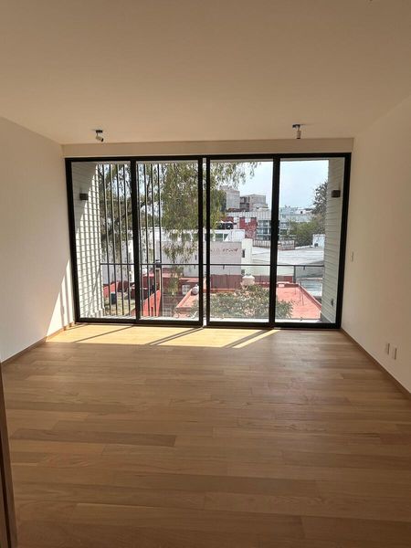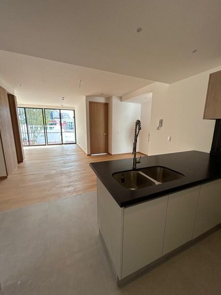 2 recámaras, 1 baño completo, 1 medio baño, cocina integral abierta y estancia con excelente iluminación.