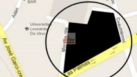 El terreno colinda con Calzada Las Palmas, Calle Cuauhtémoc y Calle Morelos.
