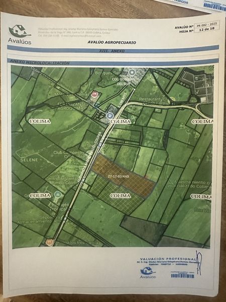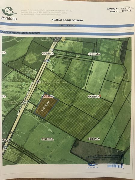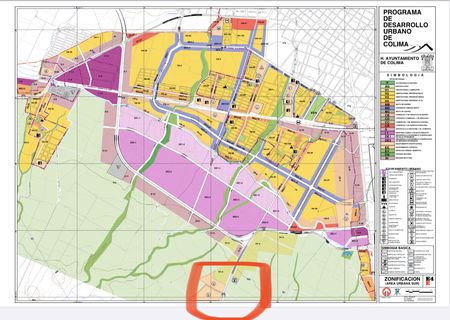 Segun avaluo se menciona que en el programa de desarrollo Urbano de Colima el uso de suelo permitido es rústico agropecuario como area de reserva a mediano plazo, al no tener especificado su vocación se deduce para granjas y huertos o habitacional campestre densidad baja . De efectuarse el plan parcial de desarrollo actual su valor se incrementará de forma relevante.
