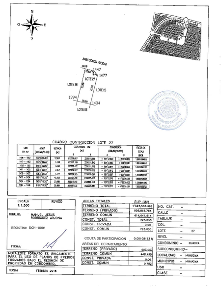 Precio Regular por m2 $1,600 precio de remate $500 pesos