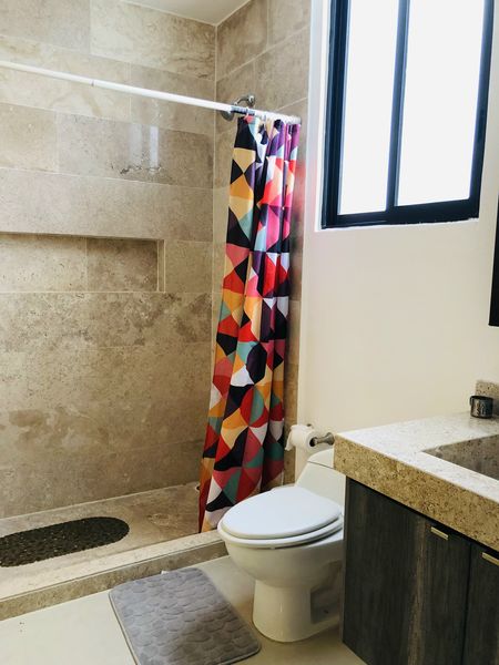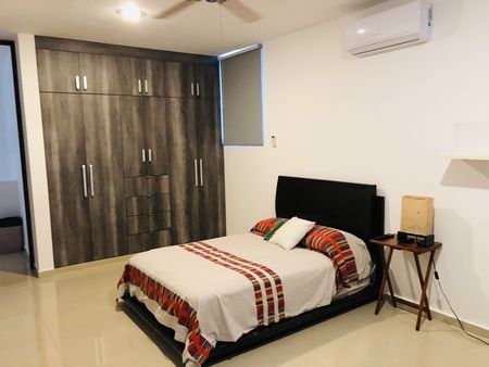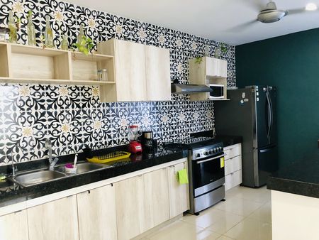 Esta hermosa residencia COMPLETAMENTE AMUEBLADA Y EQUIPADA de 3 recámaras y lindo estudio, está completamente lista para habitar, cuenta con aires acondicionados en todas las habitaciones, ventiladores de techo, asi como en la sala , el comedor y en la cocina.