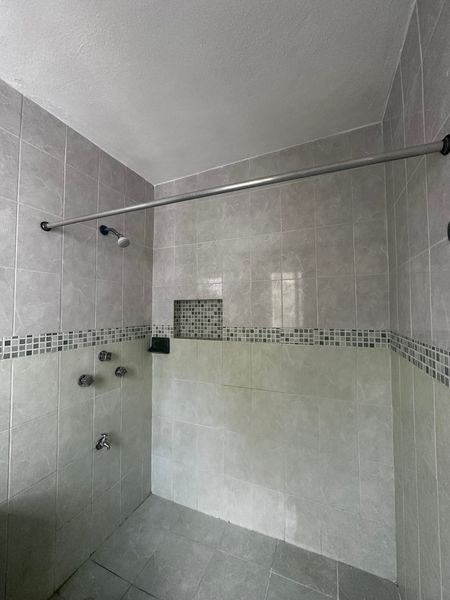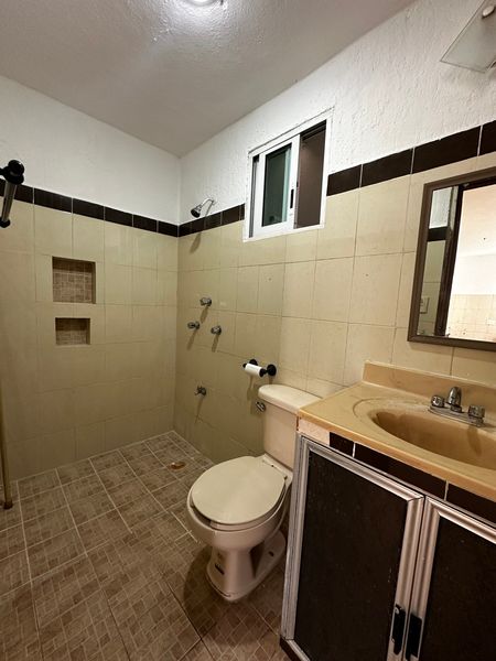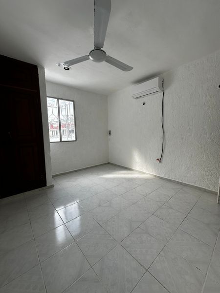 1 recámara con baño completo, aire acondicionado, ventilador y clóset.