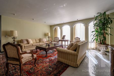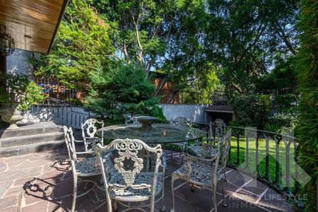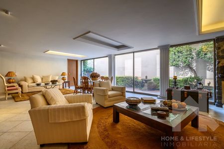 Residencia en renta en Lomas de Chapultepec que destaca por sus espacios amplios, iluminados y ventilados, ofreciendo una sensación de comodidad. La sala y el comedor conforman un ambiente generoso que permite distribuir el mobiliario con libertad y conectar de forma fluida. Consta de un family room ideal para la convivencia diaria, además de un cuarto de televisión que brinda un espacio adicional para entretenimiento o descanso. Los acabados de madera aportan calidez y carácter a cada área. La cocina integral ofrece funcionalidad y amplitud para disfrutar del día a día. Incluye área de lavado y dos cuartos de servicio que facilitan la operación del hogar. La propiedad dispone de siete lugares de estacionamiento y dos bodegas que permiten almacenamiento amplio y ordenado. Al frente se extiende un jardín espacioso que enmarca la fachada y crea un entorno agradable y privado. Su ubicación es privilegiada, a muy corta distancia del área comercial y de City Market, lo que garantiza practicidad, movilidad y acceso inmediato a servicios.