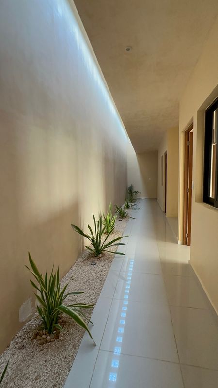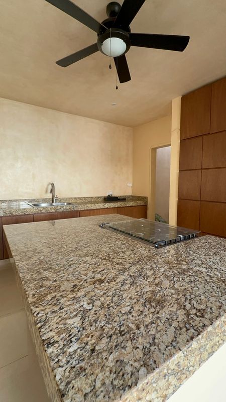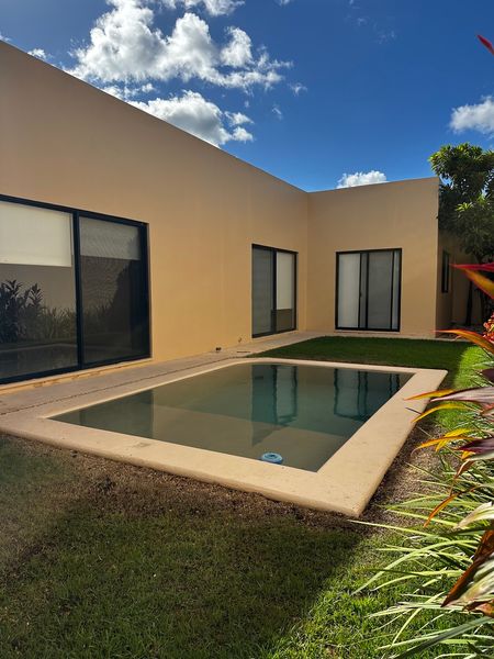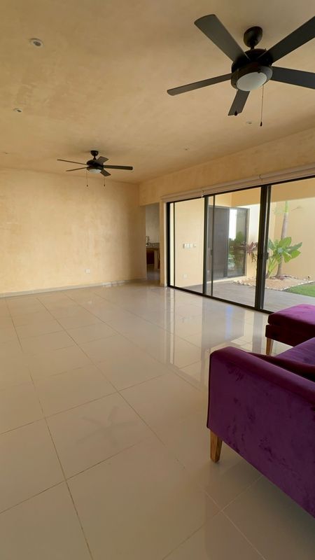 Casa estilo californiano en renta al norte de Mérida, ubicada en Privada Santa Cruz en Conkal, una propiedad lista para ser habitada.