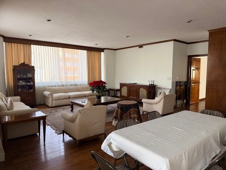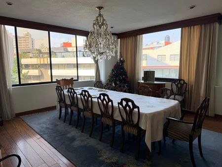 Magnífico departamento de 373 m² con muy buena iluminación y vistas muy bonitas. Cuenta con amplia sala, comedor, cocina cuarto de lavado cuarto de servicio, estudio ante comedor, baño de visitas, tres amplias recámaras, tres baños con vestidor en un piso tres en una ubicación privilegiada precio en renta sin muebles