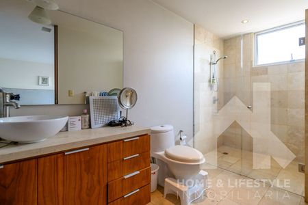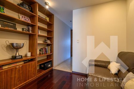 El departamento se encuentra en la parte baja de Lomas de Chapultepec ofreciendo una distribución funcional ideal para quienes buscan comodidad y privacidad. Cuenta con sala y comedor, ambos con acceso a una terraza donde se puede instalar un asador, perfecto para reuniones al aire libre. La cocina es abierta y se conecta directamente con la estancia, separada por una elegante puerta de madera que se puede mantener abierta o cerrada según se prefiera. El área de lavandería incluye una alacena de limpieza y un fregadero, además de un cuarto de servicio completo. El departamento dispone de medio baño para visitas y un cómodo cuarto de TV. Cuenta con dos recámaras secundarias, ambas con vestidor y baño privado, y en el pasillo, un amplio clóset de blancos, librero y un espacio que puede funcionar como estudio abierto. La recámara principal es amplia, con mini split, vestidor y baño completo. Cuenta un elevador directo al departamento, escaleras de servicio, puerta eléctrica para el estacionamiento y vigilancia las 24 horas. Complementando la propiedad, ofrece dos lugares de estacionamiento para autos chicos