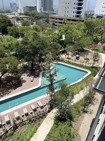 Rento departamento en Verdalba en el Mpio de Monterrey., cuenta con 105mts2, cuenta con area de sala comedor, por separado, cocina equipada, balcon , climas minisplit, 2 (dos) recamaras una con area de closet ambas y area de tocador en la recemara principal, 2 baños completos, Area de Lavado, con Lavasecadora (electrico), Boiler (electrico). cuenta con chapa de acceso digital y los encendidos de luz del departamento se pueden vincular con Alexa para su funcionamiento y comodidad.