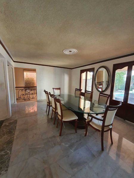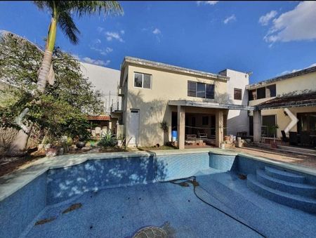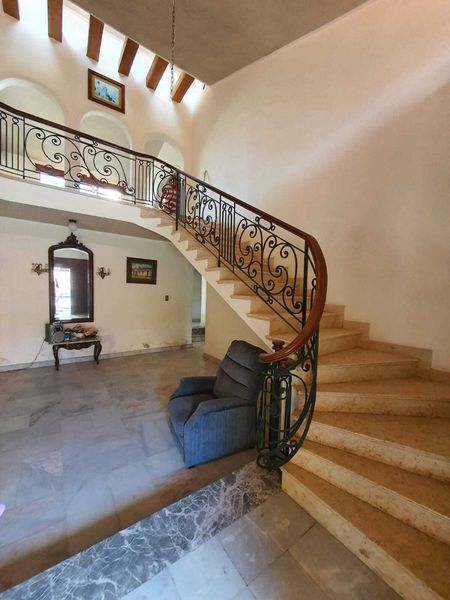 Hermosa residencia al norte de Mérida ubicada en Villas del Sol cuenta con sala comedor anti comedor sala de televisión cocina área de lavado garaje techado para cuatro vehículos cuarto de servicio cuarto de juegos cinco recámaras cuatro baños medio baño de visitas oficina piscina jardín se encuentra en esquina pisos de mármol