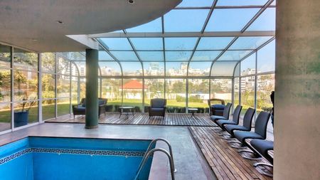 Entre sus amenidades cuenta con una alberca techada y área circundante con camastros, equipada con su cuarto de maquinas, sauna, baño y vestidor, también cuenta con salón de juegos, estos con salida a un amplio jardín con terraza con asador y una increíble vista abierta.