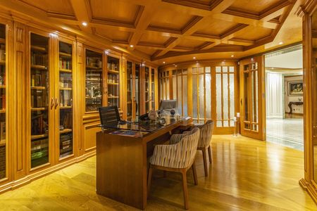 Entre sus características adicionales se incluyen un despacho privado con biblioteca de madera de cedro, un garaje con capacidad para seis autos y acceso a amenidades de clase mundial, como casa club, alberca semiolímpica, spa, gimnasio y 80,000 m² de áreas verdes.
