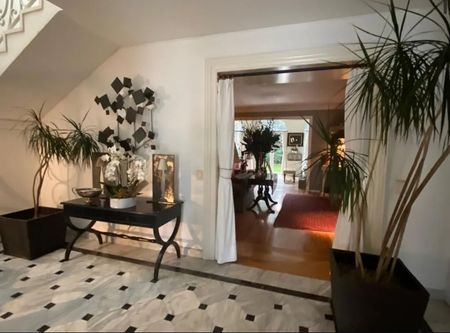Al ingresar, te recibe un despacho ejecutivo de gran amplitud, perfecto para trabajar desde casa o atender reuniones privadas. La estancia principal, con doble sala y comedor, se conecta directamente al majestuoso jardín, creando un ambiente ideal para eventos sociales o corporativos.
