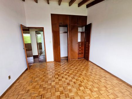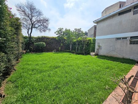 Actualmente, la construcción se distribuye en dos departamentos independientes, cada uno con cocina, sala/comedor, terraza, 3 recámaras, 2 baños, área de lavado y cuarto de servicio con baño. El departamento de la planta baja también cuenta con acceso a un jardín de alrededor de 150 m2 y estacionamiento para 4 coches. Perfecta para dos familias que quieran remodelar y que quieran estar juntas y seguir manteniendo sus espacios o vivir en un departamento y rentar el otro.
