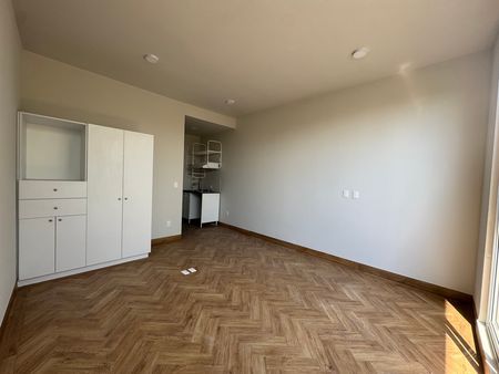 Suite con cocina, con techos altos, excelente iluminación, techos de casi 3m2 de altura, closet, baño completo y terraza.