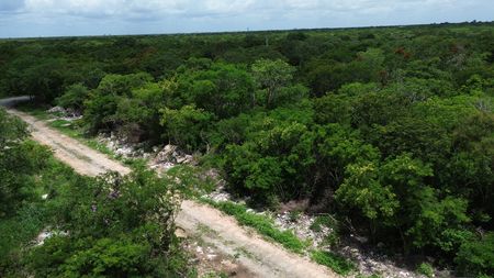 Oportunidad de inversión al norte de Mérida: terreno de 2 hectáreas ubicado a escasos metros de la carretera principal y muy cerca de desarrollos residenciales como Hacienda Kikteil. Su ubicación estratégica lo hace ideal para proyectos inmobiliarios.