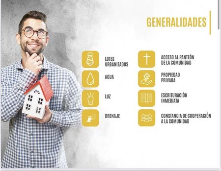 El valor del lote es de $250,000 y ofrecemos crédito directo . Enganche de $20,000 y 24 MSI quedando mensualidades de $9,583 .