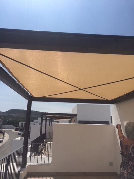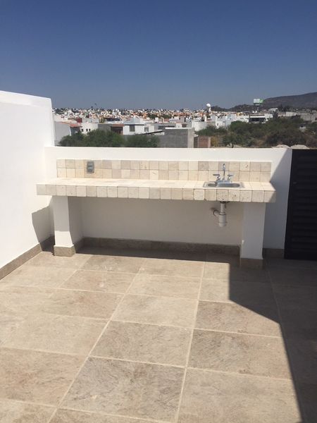 Preciosa y nueva casa en renta en Torre de Piedra Juirquilla. Cerca de todo, la casa esta en Privada con alberca y palapa y una terrraza preciosa. Vigilancia las 24 horas, cuota de mantenimiento incluida en el precio de renta.