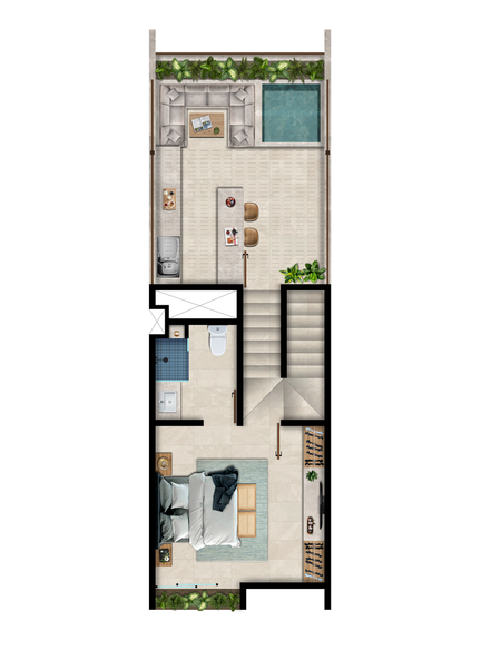 AMENIDADES: alberca con chapoteadero, área de asoleadero, andadores con vegetación, zona lounge, terraza al aire libre, gym, lobby.