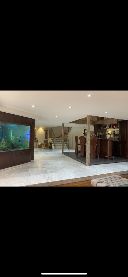 Sala, comedor y salón de juegos con piso de mármol, La casa tiene sistema hidroneumático para que el flujo de agua sea con buena presión, cisterna con abastecimiento para un mes.