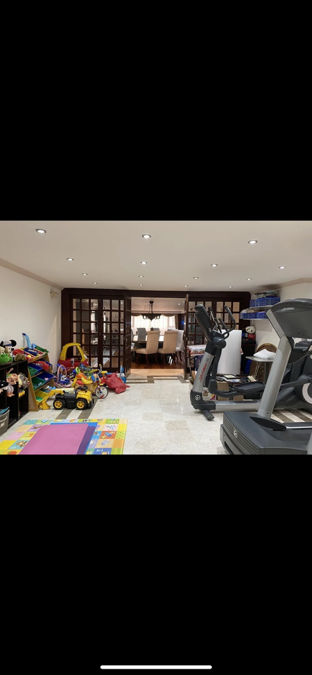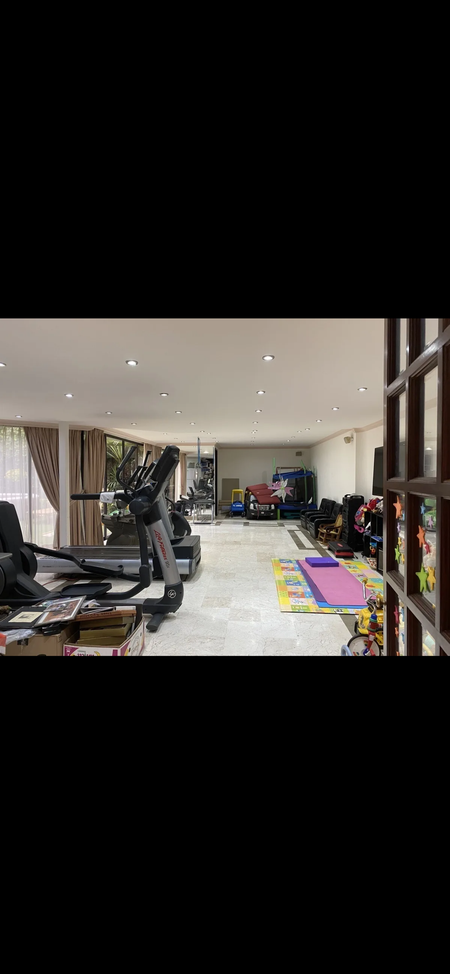 - Salón de juegos de 100 m2 con aparatos de gimnasio caminadora y elíptica