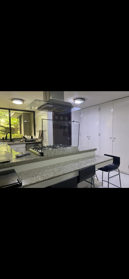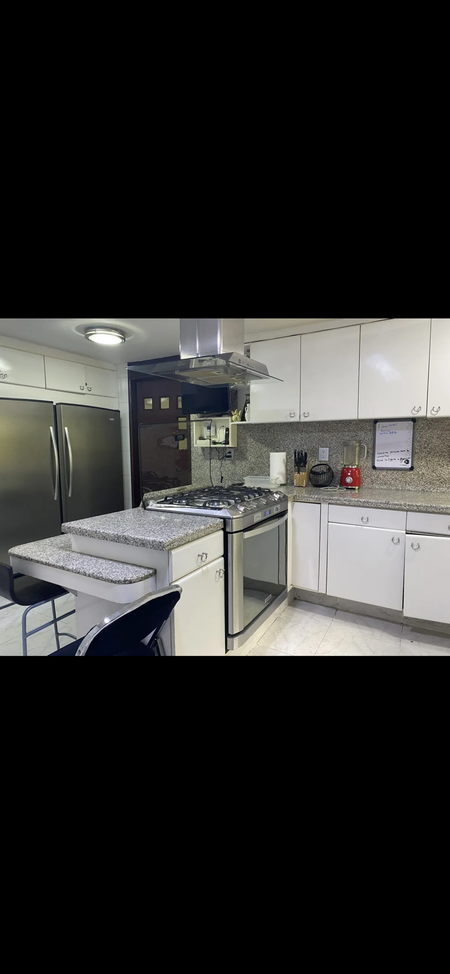 - Amplia cocina cerrada, con barra de mármol, piso cerámico.