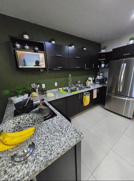 Hermosa, casa de 3 niveles, 2 recámaras con aire acondicionado y 1 estudio, pisos de porcelanato de 6x6, 3 lugares de estacionamiento techado, paneles solares, roof garden, terraza, área de servicio y más!