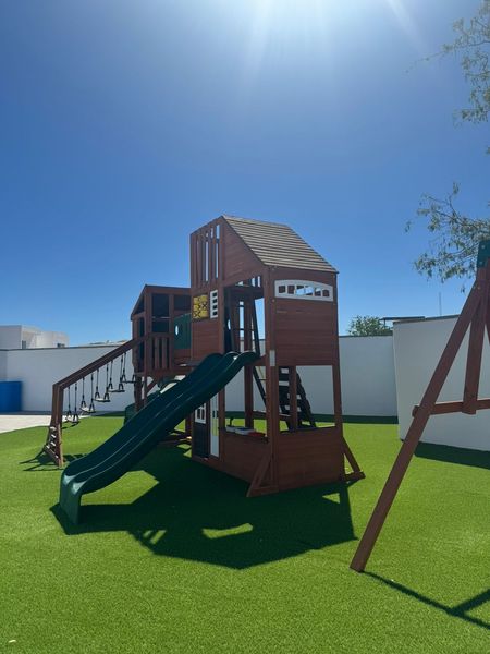 Fraccionamiento privado con acceso controlado y caseta de vigilancia, área común con alberca y cancha de Pickleball.