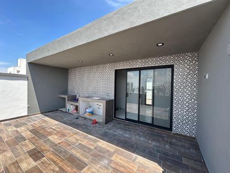 Terraza frontal con asador y vista hacia Querétaro con jardinera.